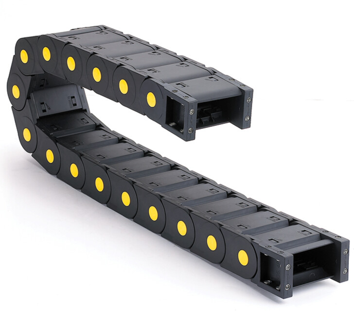 拖鏈每節(jié)都能打開,便于安裝和維修。運(yùn)動時噪音低、耐磨、可高速運(yùn)動。