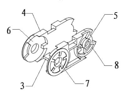 [0003]每條拖鏈由多個單元連接組成,連接之間轉動自如,目前,常用的拖鏈的扣板連接節卡接在各單元上,扣板連接節僅僅起到封擋拖鏈內部件的作用。在拖鏈的運行中,高速旋轉的拖鏈,由于載荷的作用下會產生疲勞,會出現松動、擺動的現象,以至于拖鏈斷裂,使用壽命較短。