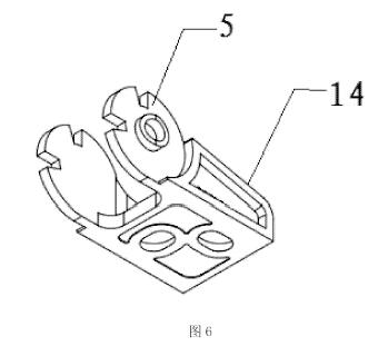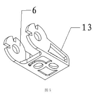 [0026]該工程拖鏈還包括兩個端部拖鏈單元I分別為第一端部拖鏈單元13和第二端部拖鏈單元14,第一端部拖鏈單元13上設有用于與拖鏈單元I的卡接部5連接的卡槽6,第二端部拖鏈單元14上設有用于與拖鏈單元I的卡槽6連接的卡接部5。其中,端部拖鏈單元I與拖鏈單元I的連接原理相同,第一端部拖鏈單元13和第二端部拖鏈單元14與拖鏈單元I能夠實現自由轉動。